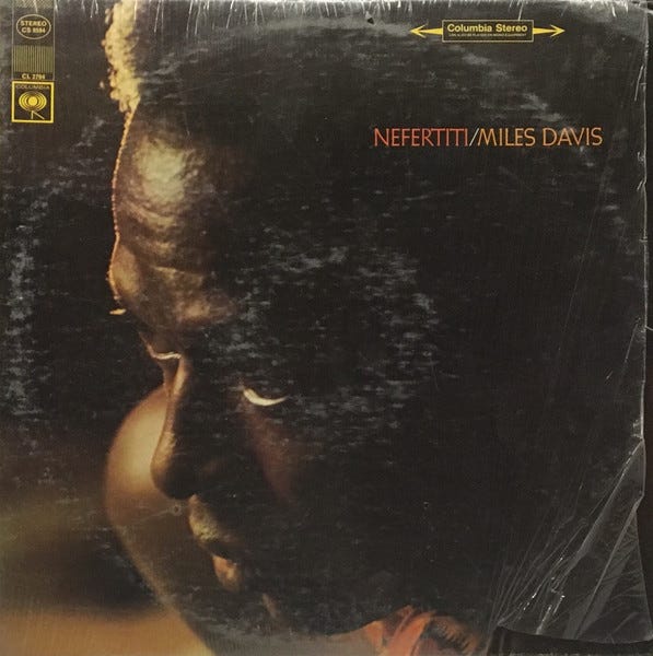 The end of acoustic Davis. His second great quintet—Wayne Shorter, Herbie Hancock, Tony Williams, Ron Carter—is rounding to a close and getting compositionally playful… or, I suppose I should say, compositionally more playful. None of these players are ever lacking new ideas. Shorter’s title track flips traditional roles, with the horns repeating patterns while the rhythm section explores the space. Hancock’s “Madness” and Williams’s “Hand Jive” evoke an anxious energy that contrasts Davis’s sure-toned melodic searching. Throughout, narratives never quite arrive; instead, the band creates shifting soundscapes, holding your attention in the way they can keep together despite the complicated, ever-moving pieces. Think an intricate puzzle box that sits perfectly when still but collapses into shambles whenever you accidentally nudge the table. It is not all intellectual though; catch Nefertiti on the right night, and you’ll get pleasantly wrapped up in its moods: sandalwood, scotch, wool, tobacco, dark chocolate.